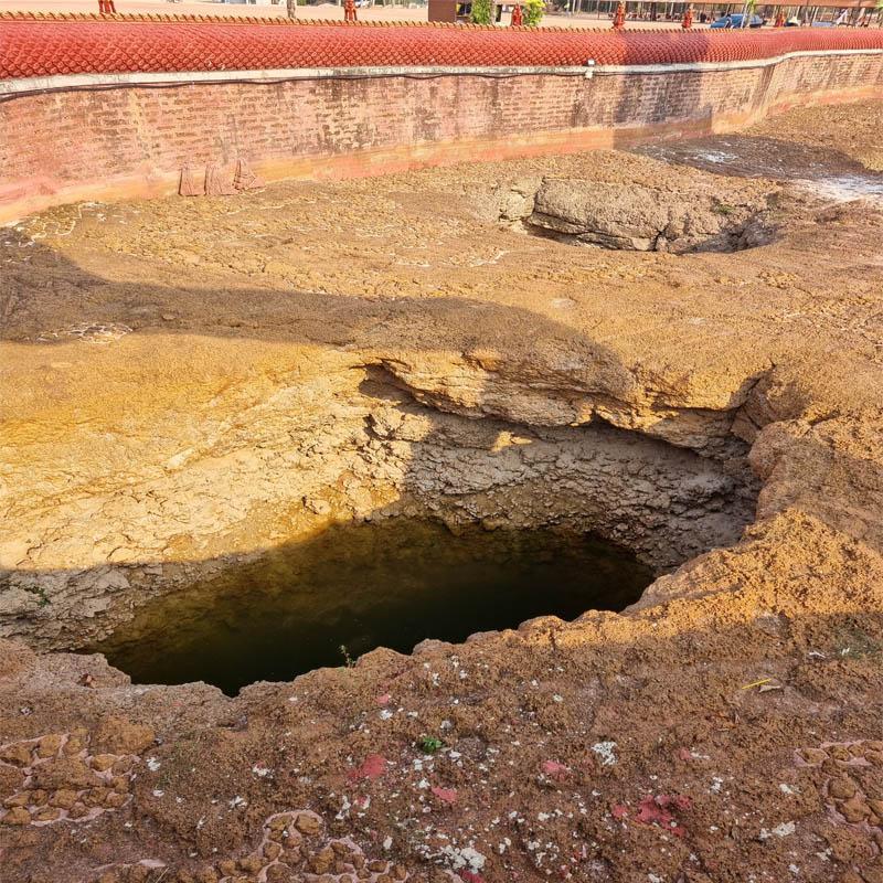 อยู่กลางแผ่นหินศิลาแลงที่พบโดยบังเอิญขณะที่ทำการปิดหน้าดินเพื่อขยายการสร้างเจย์ดี ตรงนี้เชื่อกันมาว่า เป็นดินแดนลับแลเป็นที่อยู่ของ พญานาค ใต้สระน้ำแห้งนี้ มีหอนศิลาแลง มีน้ำสีต่างๆมากมายจากธรรมชาติ มีมากมายนับ สิบหลุม เป็นที่น่าอัศจรรย์ อย่างหนึ่ง